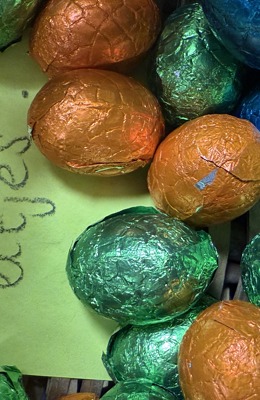 Onlangs plaatsten we op Facebook een filmpje met Danny die erg enthousiast met zijn mandje vol chocolade-eitjes zwaaide, de vraag was hoeveel eitjes er 'na al het zwaaien' nog in het mandje zaten. Uit alle goede antwoorden zou 1 prijswinnaar getrokken worden...